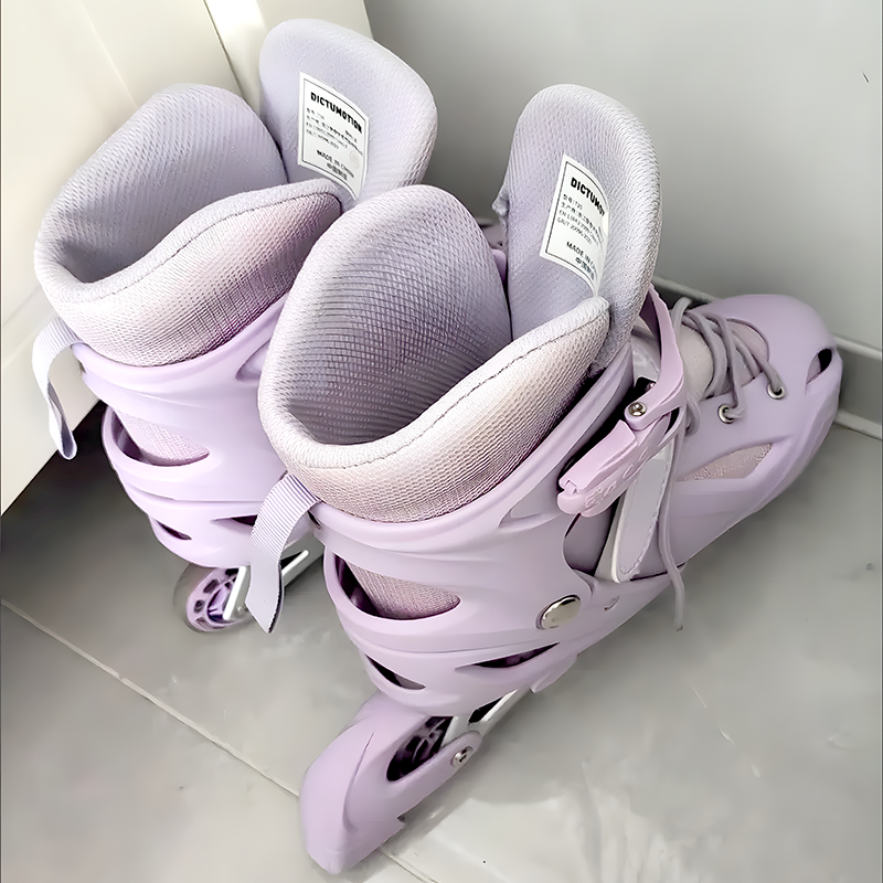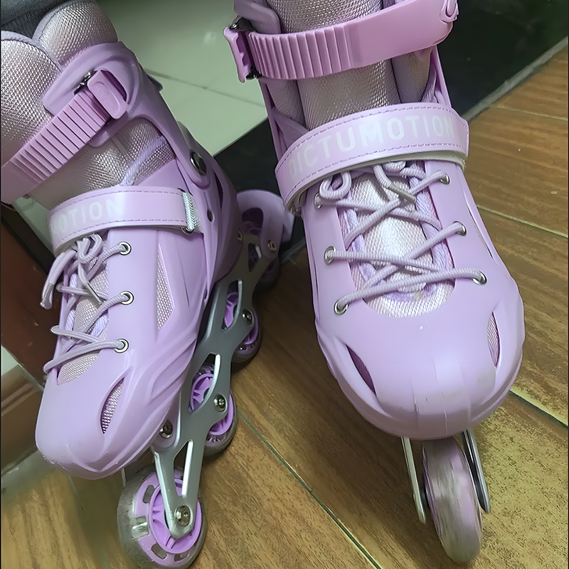 DICTUMOTION T20 Kids Inline Skates are specifically engineered for young beginners, offering superior protection, breathable comfort and long-lasting adjustability. The front wheel flashes while skating, making every ride more fun and stylish — no battery required.