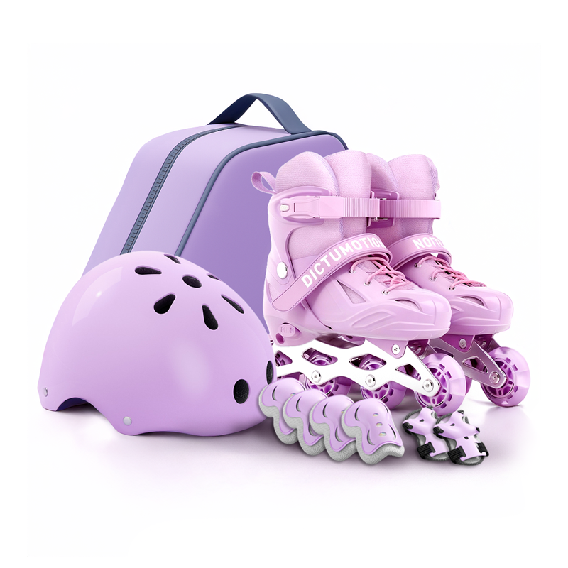 Complete kids skating safety bundle including adjustable DICTUMOTION T20 inline skates,