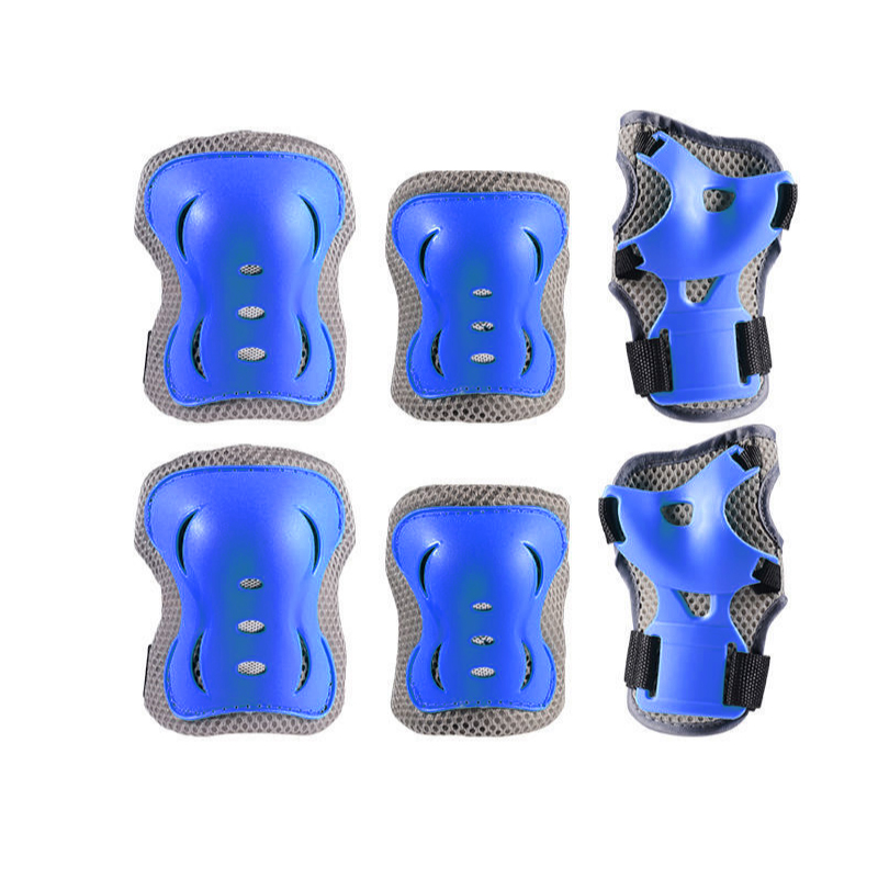 6-piece kids protective set with impact-resistant hard shells, soft EVA padding and adjustable straps, providing secure knee, elbow and wrist protection for skating, biking and scooter riding.