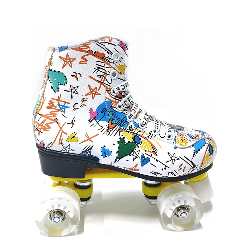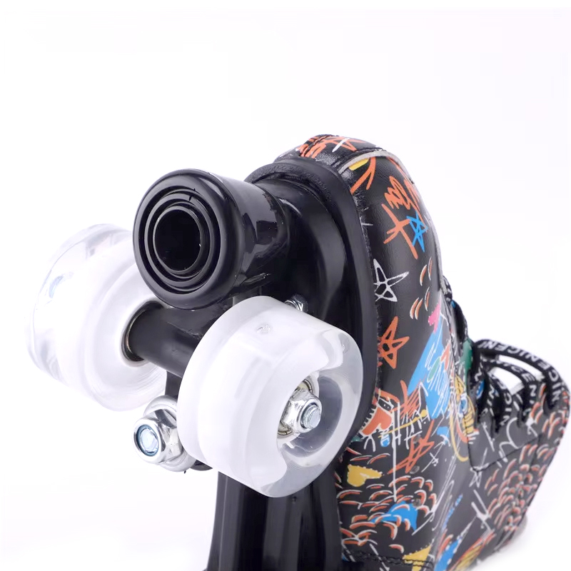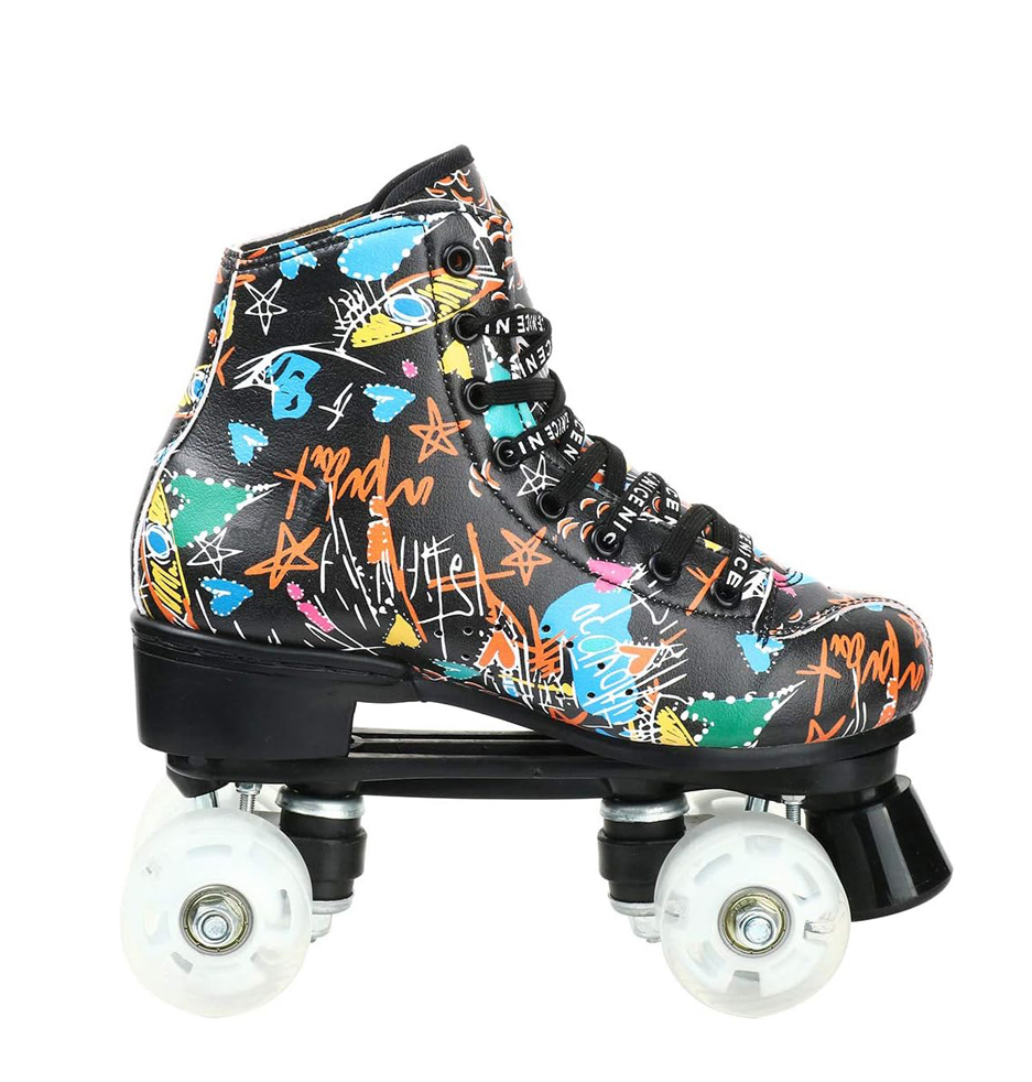 The TIEJIAN C70 quad roller skates combine artistic graphic design with stable high-top support, breathable comfort, and smooth rolling performance. With optional LED light-up wheels and reinforced components, the C70 is perfect for teens and adults who want both fashion and function at the roller rink.